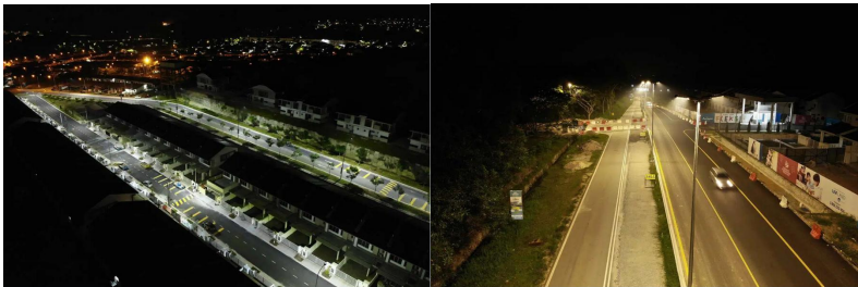 Txoj kev dav dav yog 8 meters, nrog txoj kev taug kev ntawm 1.5 meters ntawm ob sab. Qhov siab ntawm lub teeb ncej yog 10 meters, qhov ntev ntawm lub cantilever yog 1 meter, thiab qhov deb ntawm lub teeb ncej thiab curb yog 36 meters, uas ua tau raws li qhov yuav tsum tau ntawm M2 teeb pom kev zoo theem. Raws li cov teeb pom kev simulation ntawm E-LITE, nws tau pom tias 115W Omni series yog qhov tsim nyog heev.![]()